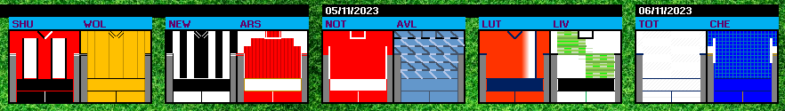 There was one new kit on show this weekend, with Nottingham Forest using alternative socks with their 3rd Kit, we have seen these socks before but they were worn with alternative shorts as well, interesting against Brentford who wear the same colour combination as Sheffield United… so I guess they did not like the look of the shorts to use them again!