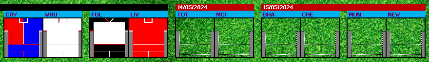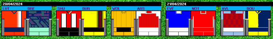 Matchweek 36 has now been completed, and we are that stage of the season where most teams have just one more Home Game Each.. so a chance of new kits on show in the coming weeks (more on that below). The fixtures from this weekend are a mix of games from Matchweek 7 (7 games from there) and Matchweek 2 (3 games from there).. the fixture computer must of had a funny turn when coming this round of games!