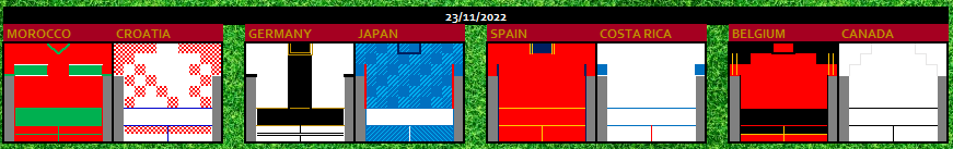 Two teams from the group reached the final four of the competition, with Morocco using a Kit Mash up in their Semi Final against France, pairing their Primary Kit with Secondary white socks. Croatia unlike recent tournaments were mainly seen in the Primary kit with their Secondary only used in their Semi-Final appearance.