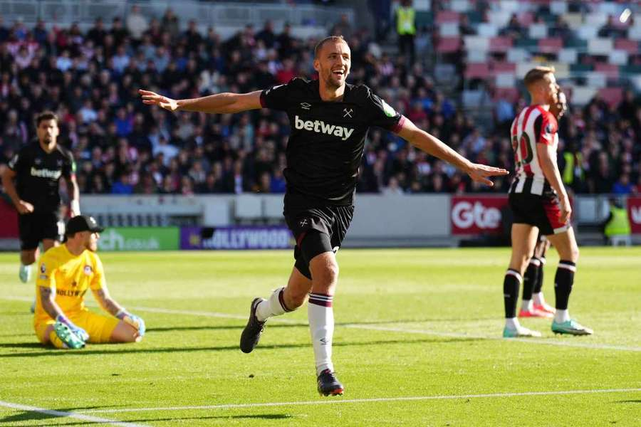 West Ham United wore their Away Kit with alternative “Ecru” shorts.