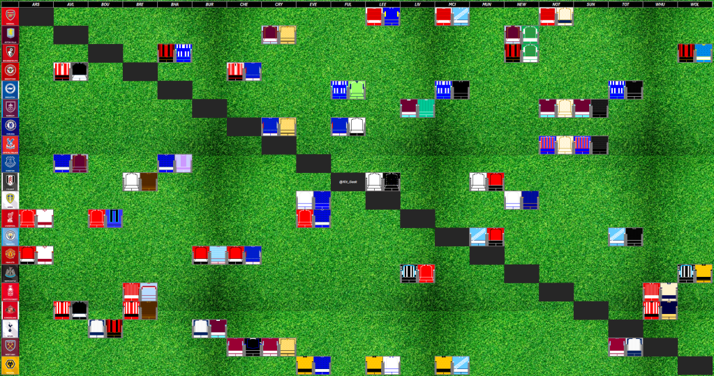 Overall we have seen 15 Home Kits, 4 Away and 1 Third Kit in action.