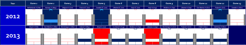 The final use of the Royal Blue Away Kit was against Germany in June, and was only the 3rd time it had been used in an Away game in it’s nine usages (being worn six times in Home Games).