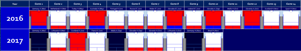 It is time to take a look at first half of 2020’s in some more detail, one of the most successful period’s in Men’s National team history which meant the team played 67 games across these five years, which is the most in a five year period in these records.